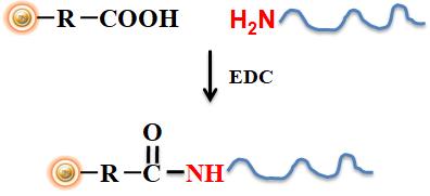BcMag? Quick Oligo-DNA Conjugation Kit可以快速,有效地將寡核苷酸DNA固定到我們專有的磁珠上。為了更安全的連接,該試劑盒設計為使用交聯(lián)劑為1-乙基-3-(3-二甲氨基丙基)碳二亞胺(EDC),將氨基修飾的寡核苷酸共價固定到活化的羧基磁珠表面(圖1)。