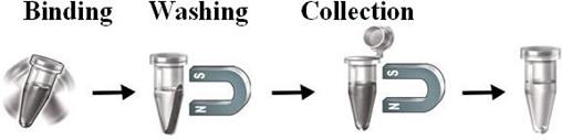 甲苯磺?;胖?/span>可以完美地作為親和樹脂進行親和純化,將分子、細胞和部分細胞提取物進行提煉純化。在與配體結合后,將磁珠添加到含有目標分子的樣品中,然后混合、孵育、洗滌和洗脫目標分子(圖2)。