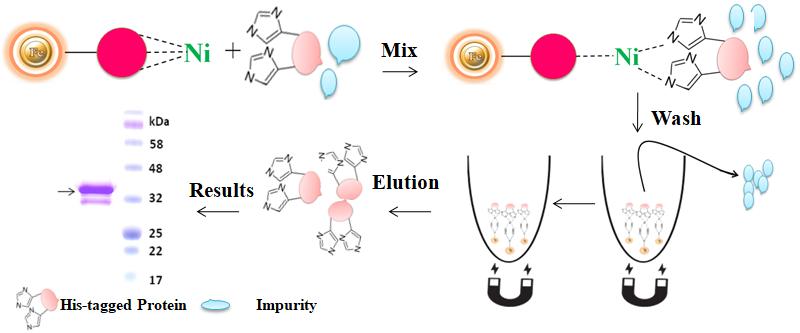 此外,這些螯合劑主要固定在傳統(tǒng)的親和色譜基質(zhì)上,如瓊脂糖樹脂或色譜柱。這些固體基質(zhì)使純化過程繁瑣,耗時(shí),無法處理非常微小的樣品,并且難以適應(yīng)自動(dòng)化系統(tǒng)。Bioclone推出了一種功能強(qiáng)大的基于磁珠的IMAC系統(tǒng)來解決這些問題。